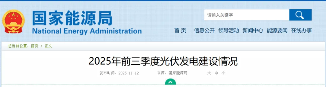 • 國家能源局:發布2025年前三季度光伏發電建設情況